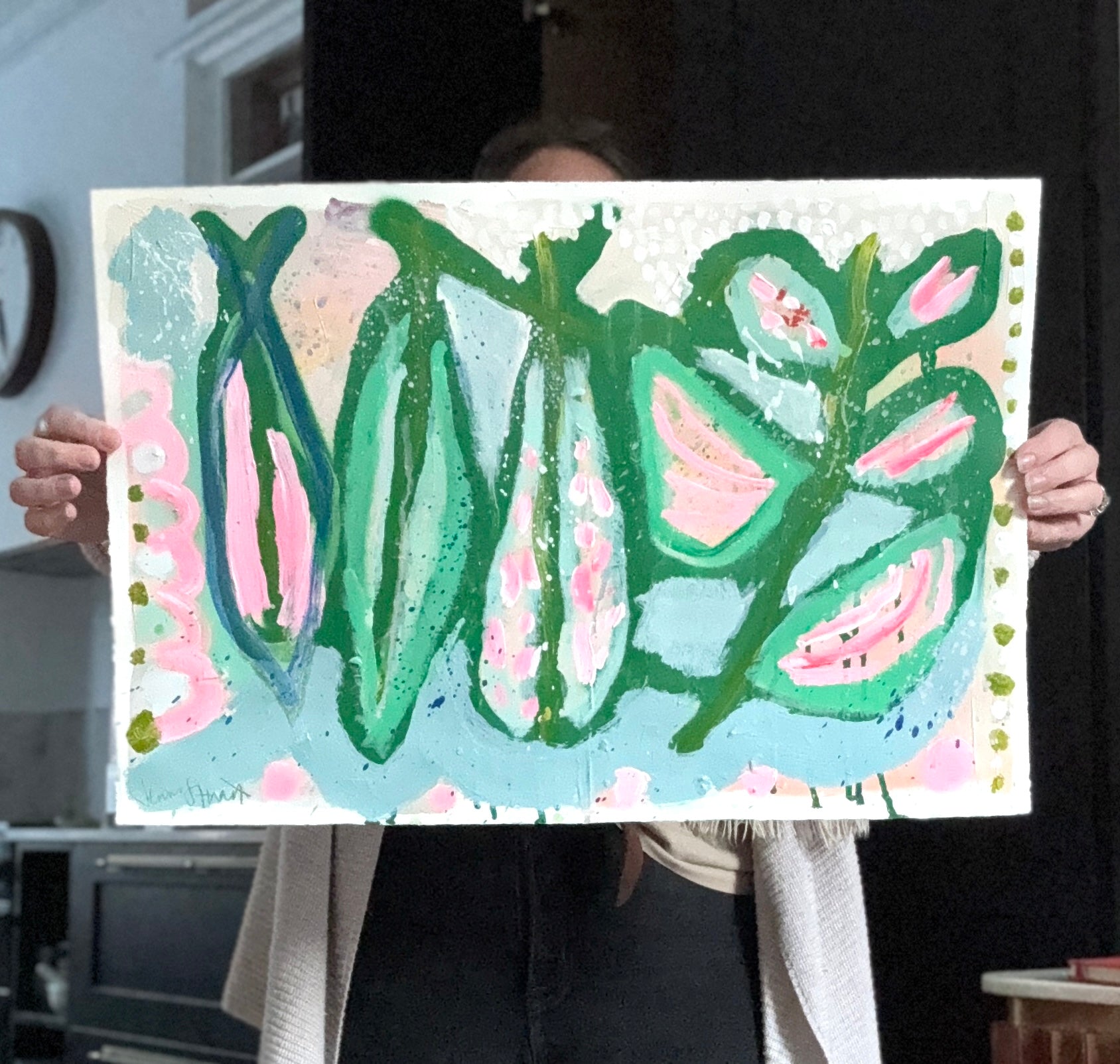 This piece is created using highly pigmented, professional-grade materials, allowing for rich depth and layered texture. The vibrant colours are designed to bring joy and warmth into your home all year round—art that keeps on giving.